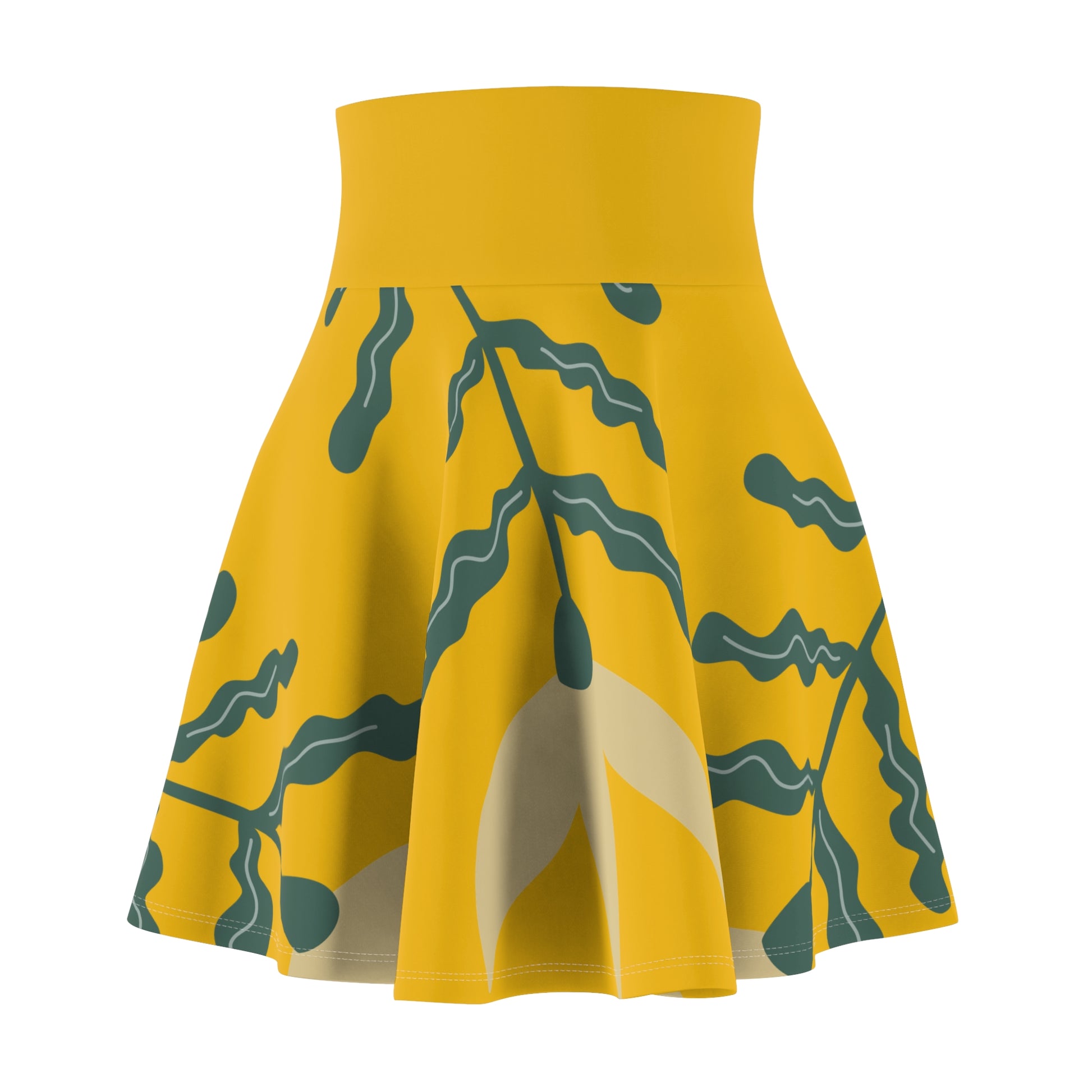 Botanical Print Women's Skater Skirt Yellow